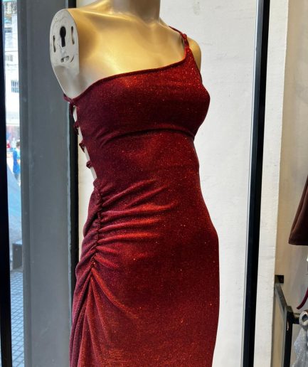 Vestido glitter largo asim tiras esp